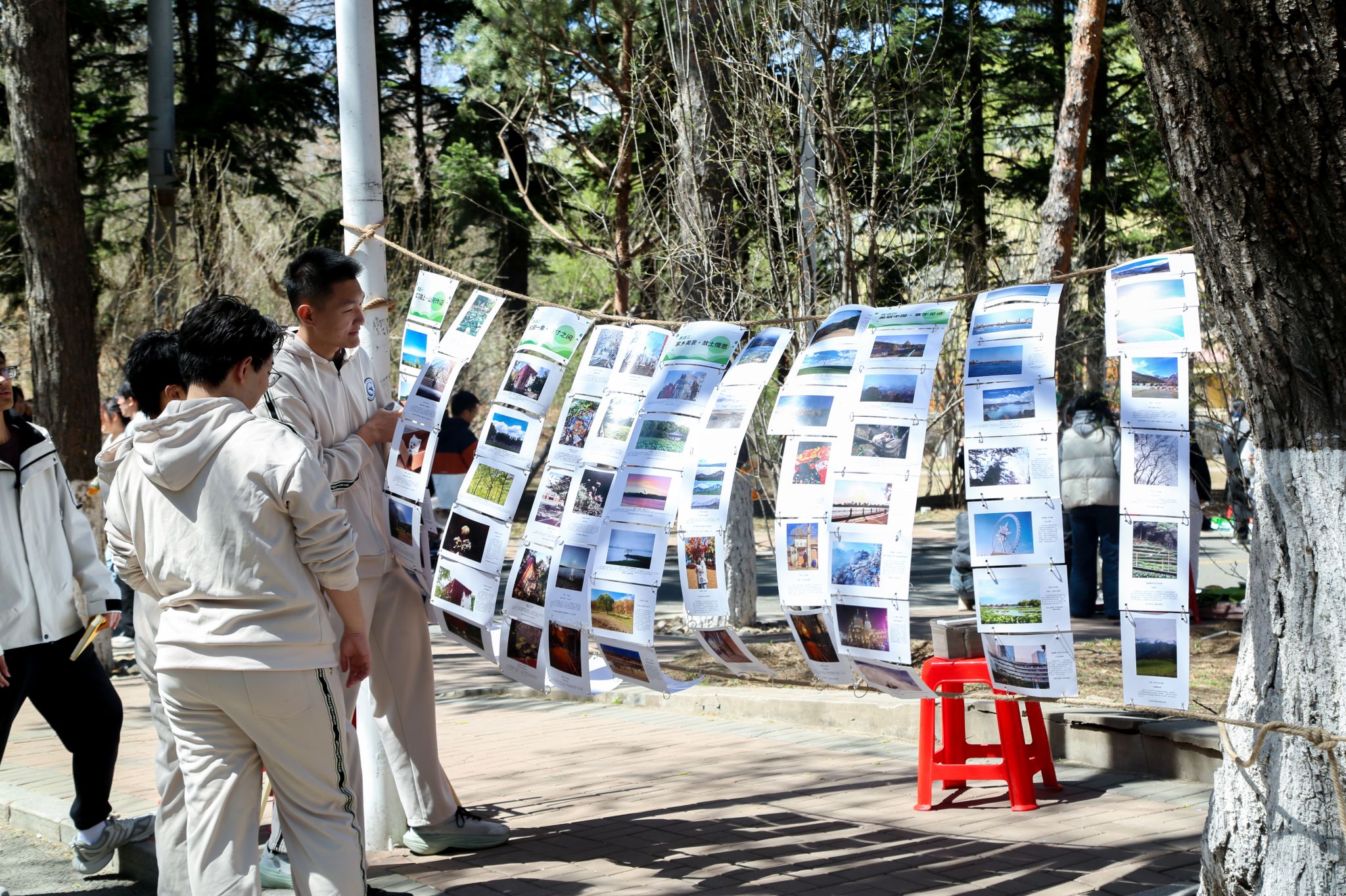 “发现地球之美”主题摄影的参赛作品也在活动现场进行集中展示,“实习路上·山河作证”“校园一角·方寸之间”“家乡美景·故土情思”“美丽中国·寰宇足迹”四大赛道共计90余幅投稿作品沿道路分区展示,一幅幅摄影作品记录了大地的壮美、校园的细节与家乡的温度,路过的师生纷纷驻足,扫码参与作品评选投票,并轻声讨论着照片背后的故事。