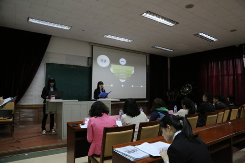12点整,主持人佟瑶作开场介绍,评比正式开始。2012级和2013级各班团支部依次上台进行本班团支部建设的成果展示。他们分别从团支部组成、思想建设、文化建设和前景展望等方面进行汇报,展示了各班团支部独特的精神和新颖的理念。整个汇报过程精彩纷呈,展现了各个团支部的风采。本次评比活动从2012级,2013级中所有团支部中评选出1个五四红旗团支部,4个五四先进团支部。