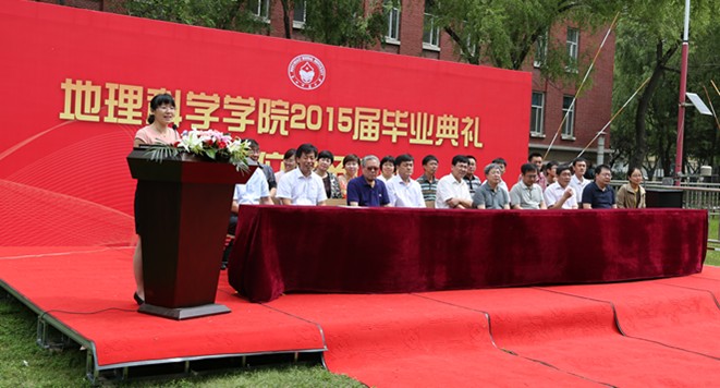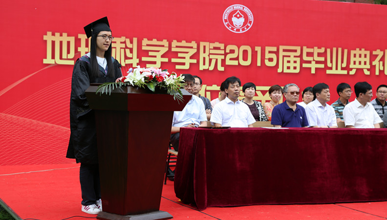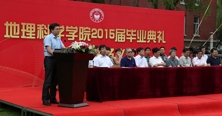 在热烈的掌声中,吴正方院长代表学院对同学们毕业表示衷心祝贺、提出殷切期望。人文地理与城乡规划系主任、教师代表刘艳军也做了主题发言,深情致辞。毕业生代表李新月同学表达了对母校和师长们的感谢和眷恋。