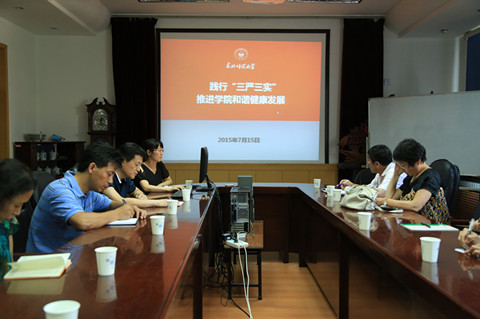 7月15日,永利集团304党委书记谷国锋为全院教工党员上了题为“践行‘三严三实’,推进学院和谐健康发展”专题教育党课。