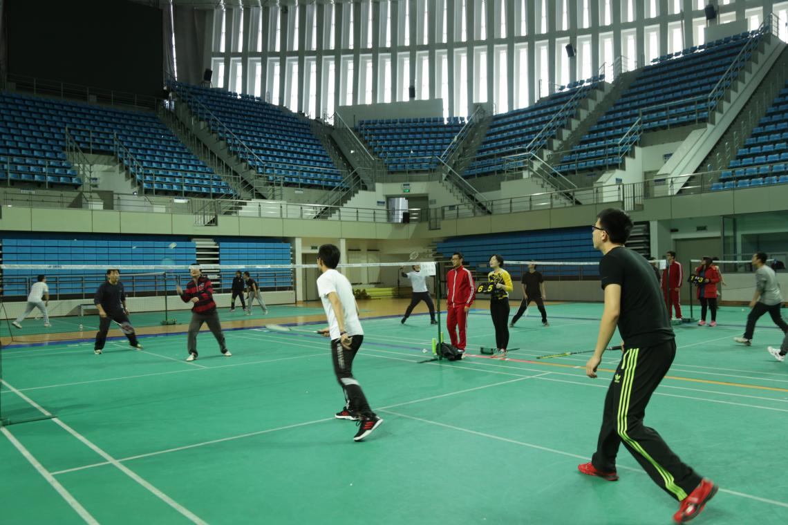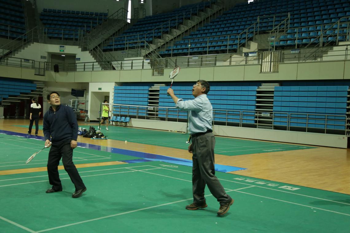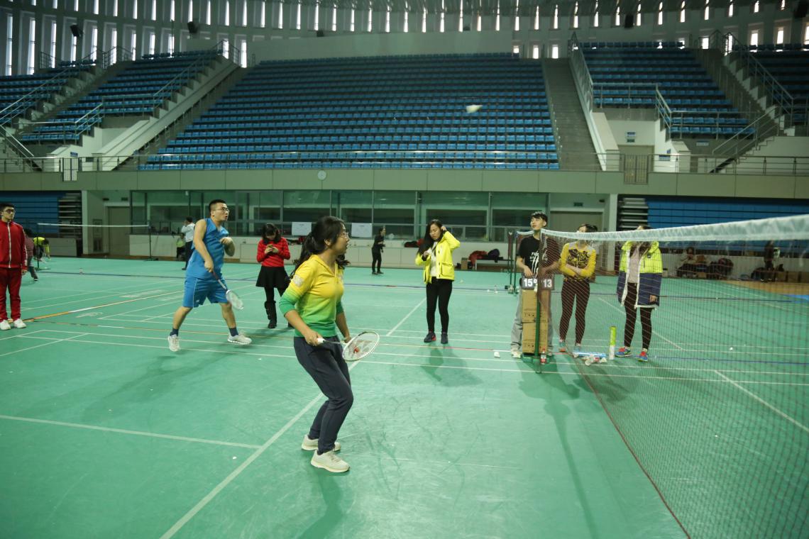 此次比赛共分为男子双打、女子双打和混合双打三项。比赛中,参赛选手各自施展绝活,捉对厮杀,场面紧张热烈而友好。男双选手腾挪跳跃、网前截杀,专业的水准让人叫绝;女双选手身姿飒爽、活力四射,尽显巾帼不让须眉;混双选手更是配合默契、战术精明,精彩程度一度引来观众雷鸣般的喝彩声。选手们在实力不相上下的情况下,年轻学生多彰显自信矫健,年长教师则更加沉着冷静,球场上你来我往,精彩不断,全场的观众时而屏声敛息,时而爆出阵阵掌声和喝彩声,白色的球在空中飞来飞去,别有一番风景,现场气氛和谐而充满欢乐。
