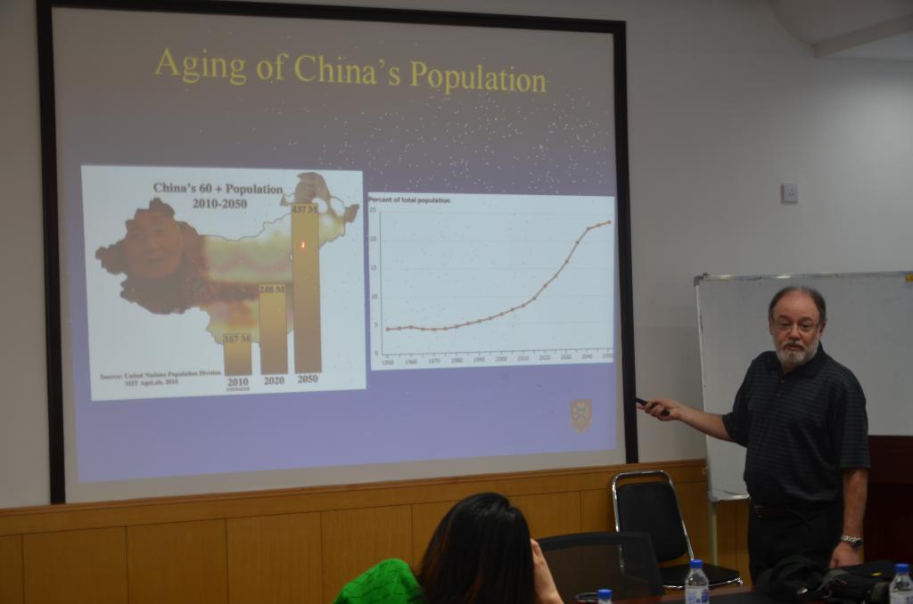 访问期间,Mark Rosenberg教授为学院师生做了两场题为“老年人口、健康与保健的新思维方式”和“批判性的关注年龄友好型社区”的学术讲座。他围绕健康地理学、人口老龄化的全球变化及趋势、年龄友好型社区等主题展开阐述。报告结束后,Mark Rosenberg教授与参与师生进行了真诚热烈的互动交流,并回答了现场同学的提问。