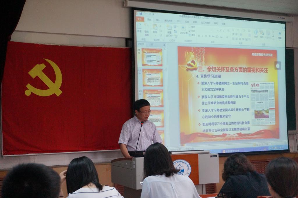 6月6日,在建党九十七周年来临之际,学院党委组织“不忘初心、牢记使命向优秀共产党员郑德荣同志学习”主题党日活动,邀请郑德荣先生的学生、我校马克思主义学部程舒伟教授讲授郑先生的生平事迹和高尚品格,学院全体教职工党员、学生党员、入党积极分子代表和群众代表共计100余人参加了活动。