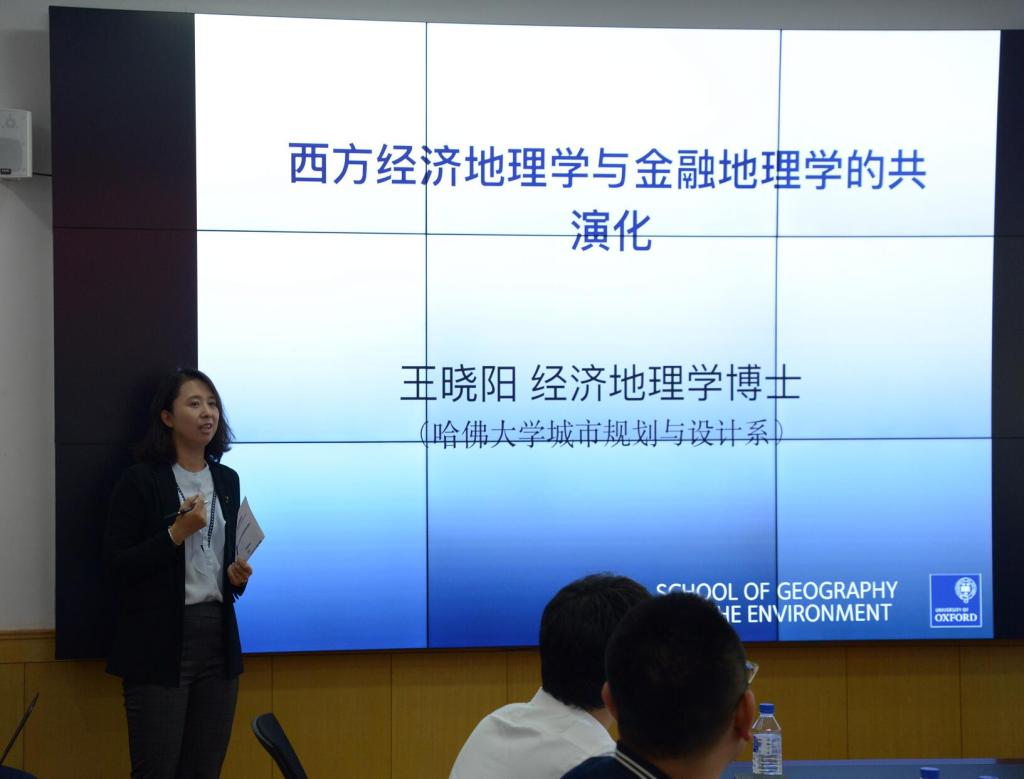 本次报告由我院宋飏老师主持。报告中,王晓阳博士首先梳理了战后经济地理学的三个发展阶段,其次介绍了金融地理学的萌芽、崛起和学科地位确立,阐述了金融地理学作为经济地理学一个分支学科呈现出与经济地理学共演化的特征,最后详细论述了金融中心研究方法的演化。报告之后,王晓阳博士还就青年学者提出的金融经济学和金融学的学科差异、欧洲与美国对经济地理、人文地理研究范式的异同、以及全球化与逆全球化对国家金融影响等问题进行了深入交流。