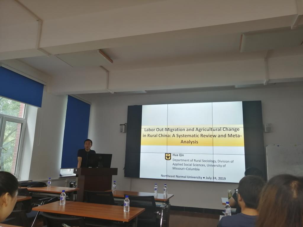 7月22日-24日,美国密苏里大学哥伦比亚分校应用社会科学学部秦华助理教授作客我院“地理与发展论坛”,为师生分别做了题为“The Association between Rural-Urban Migration Flows and Urban Air Quality in China”和“Labor Out-migration and Agricultural Change in Rural China: A Systematic Review and Meta-analysis”的学术报告。