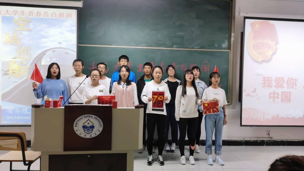 2019级团支部以朗诵、合唱等形式深情告白祖国。激情洋溢的朗诵道出了祖国一路成长一路崛起的坎坷岁月,表达了对祖国的祝福和对美好明天的期盼;动听的歌声抒发了青年学生对祖国的一片赤诚与热爱。2018级团支部通过主题演讲、舞台剧、手绘板报和爱国歌曲合唱等多种形式表达对祖国的热爱之情。