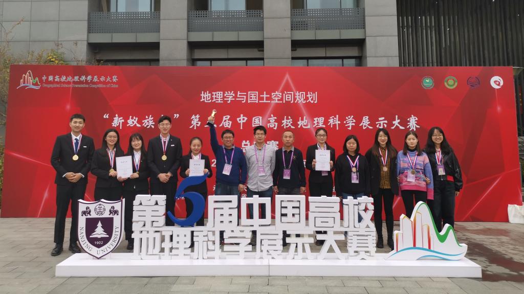 11月15日-17日,“新蚁族杯”第五届中国高校地理科学展示大赛总决赛在南京圆满落幕,我院2017级人文地理与城乡规划专业本科生董瑶嘉、张浩然、文心远、卢文飞、2018级地理科学(公费师范)专业本科生吕依洋共同组成的“三生同源”队(指导教师魏冶、王昱),荣获人文地理组“一等奖”;我院2017级地理科学专业本科生杨子力、张馨月、杨雨涵、赵若彤与地理科学(公费师范)专业本科生李享共同组成的“泥炭猎人”队(指导教师李鸿凯),荣获自然地理组“三等奖”;“三生同源”队队长董瑶嘉荣获“最佳表现女选手奖”。