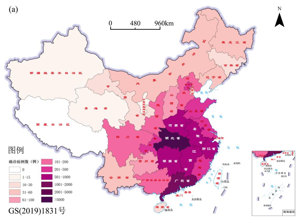 图1 全国各省(区、市)累计确诊病例分布情况(2020年2月4日模拟值)