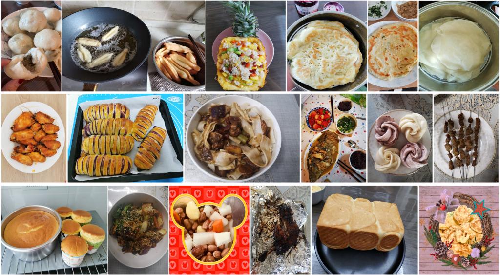 美味透过屏幕传递香气,情谊透过指尖传达真爱。活动期间,学院女教职工共晒厨艺,互传经验,交流心得。大家共同学习制作了双皮奶、红烧肉、葱油饼等美食,分享了“刚刚出炉的小法棍面包”、自制手抓饼、南瓜粥、凉皮、黑豆发糕、红烧肉、韭菜盒子、油梭子饼、披萨、菠萝饭、烤冷面、蛋黄饼干、八宝粥、萝卜丝饼、自制绿豆芽、鸡蛋饼、麻辣烫、煲仔饭、双味烤翅等多种美食照片,互相切磋,品味生活。地理科学系靳英华老师在微信群发表由衷感叹:“忙碌的工作,每天像陀螺一样的忙个不停,使我们忘了生活本来的颜色,意外的疫情竟使我们回归了生活,有了生活的乐趣,每天做点啥,让自己高兴高兴,当我们再次回归工作时,也能慢下来一点,不忘生活的本质就好了!”