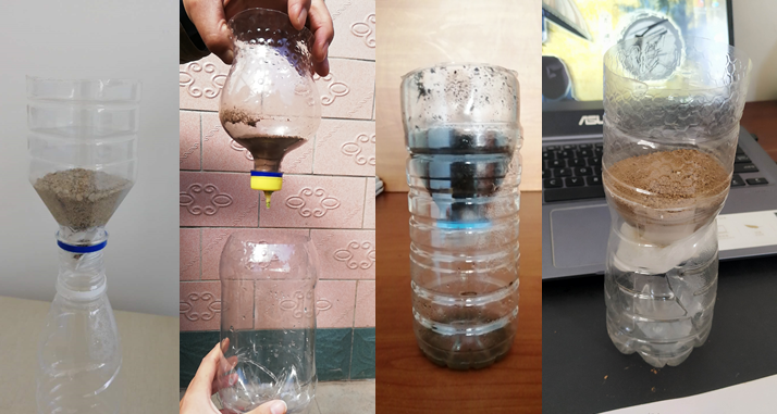 教师一方面准备好不同质地的土壤以及土壤观察、实验所需要的用具;另一方面提前3-4天通知学生同样准备土壤样品及实验所需要的用具。学生根据自身条件,采集身边土壤,可以是田间土壤、小区花坛土壤、甚至家里花盆土壤;实验用具为矿泉水瓶、纸杯、湿纸巾等常见物品。