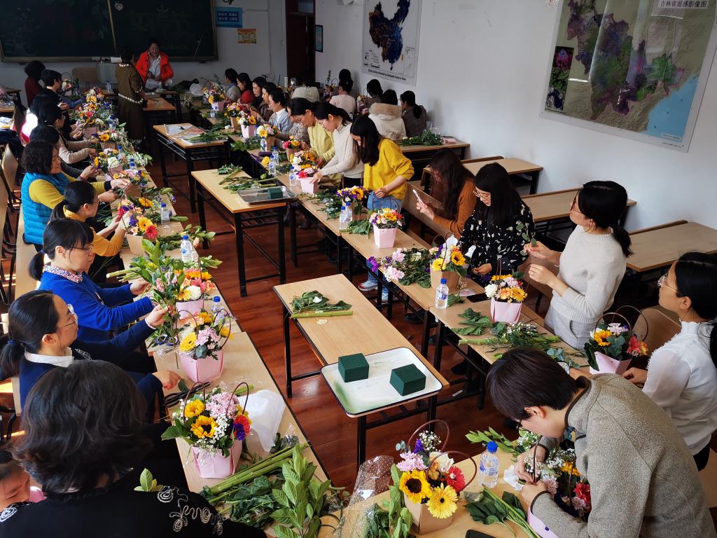 活动中,学院邀请花艺师讲授花艺知识,通过艺术构思、适当剪裁及合理摆插,表现花材的活力与自然美。女教职工借用花木来抒发高雅情怀,以花感人,以花育人,笑脸与鲜花共美,笑声与温暖同在。此次插花活动为我院女教工提供了一个欣赏美、创超美、分享美的平台,充分展现了女教工的优雅魅力和青春风采,同时使女教工在忙碌的工作中放松心情、共度美好节日!