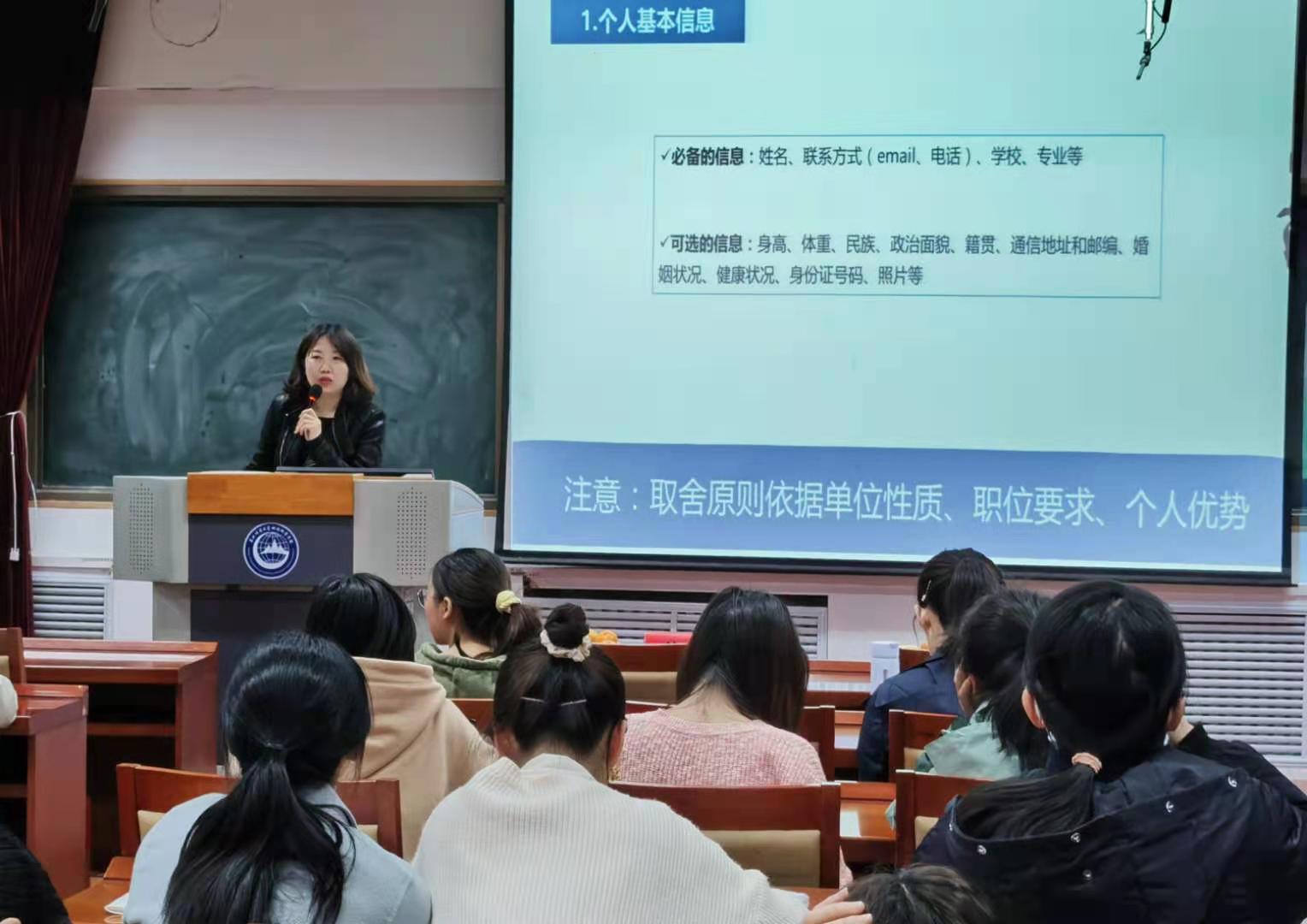 4月8日,为引导研究生树立职业生涯规划意识、全面提高就业能力,学院党委副书记陈静、团委书记沈雯为研究生进行了职业生涯规划和就业指导专题辅导。