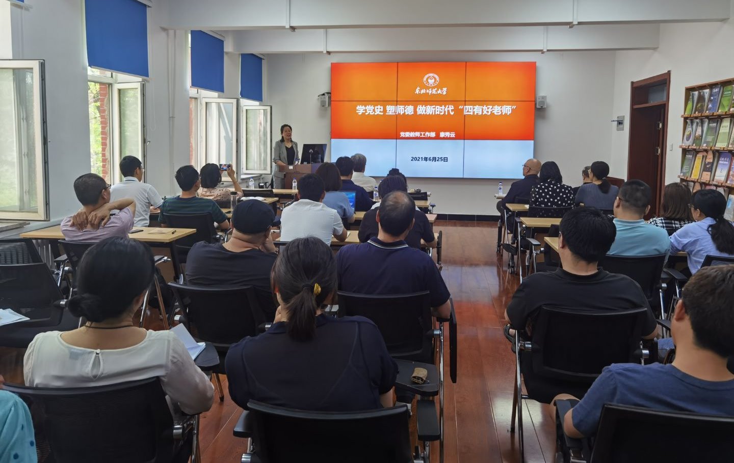 近日,为贯彻落实学校开展党史学习教育要求,引导广大教师坚定理想信念、厚植爱国情怀、涵养高尚师德,永利集团304党委邀请我校党委教师工作部副部长、党委宣传部副部长,马克思主义学部教授康秀云为全体教师开展“学党史 塑师德 做新时代‘四有好老师’”党史学习教育专题党课。