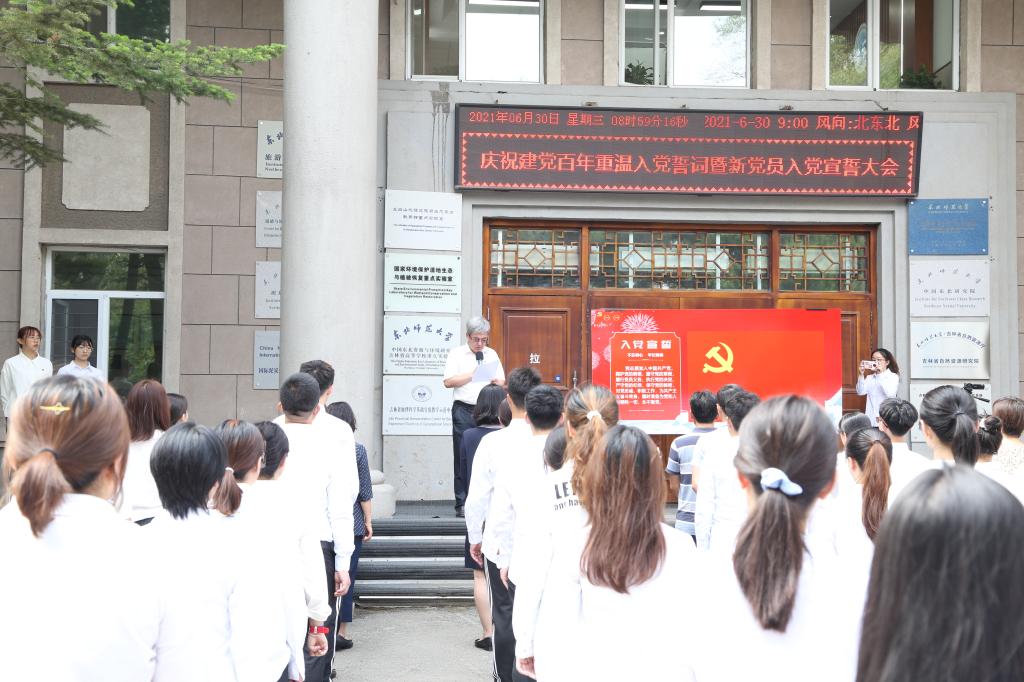 会上,师生党员奏唱庄严肃穆的国际歌,进行了重温誓词暨入党宣誓仪式。2018级本科生甘露代表预备党员发言,她表示在建党百年的特殊时刻加入中国共产党,倍感光荣而使命重大,他们会承载着这份光荣与使命,坚定理想信念、提升自身素质、服务人民、心系国家,为实现中华民族伟大复兴的中国梦贡献青春力量。