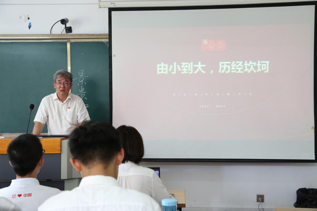 其后,学院党委书记王升忠讲授了《沧桑百年,功业千秋》的主题党课,他以中国共产党发展的百年历程为主线,诠释了中国共产党从小到大、从简到钜、从弱到强的发展历程和伟大贡献。