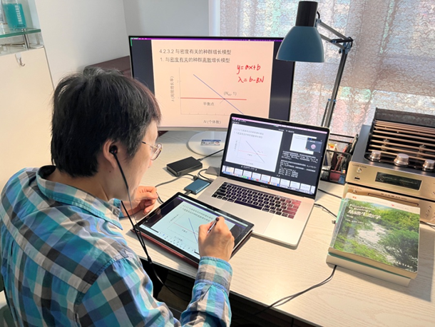 《生态学基础》这门课是我个人认为体验感非常好的一门课。在这里,我既可以听到老师的讲解,又可以与老师互动。“大屏幕滚动名单”这一独特的形式,让我们像线下一样无时无刻不集中注意力。老师通过自己的奇思妙想修改课件,把复杂知识简单化,生动形象地讲授,每次都会给我们留下深刻的印象。课堂上,老师有丰富的素材;课余时间,老师会将课上难点内容录制成视频供我们反复观看。与此同时,多才多艺的老师还会给我们弹吉他唱歌,让非常时期的我们感受到了温暖,让我更加热爱生活。