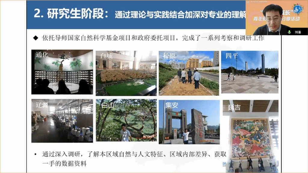 在本次分享活动中,刘鉴做了题为“以地理视角与人文情怀为基:突显城乡规划的技术性、学术性和艺术性”的报告,从自己的本科和研究生经历出发,将自己本科、研究生阶段的学习生活经验与心路成长历程与同学们娓娓道来,分享了自己在本科时期借助实习和专业考察加深专业认知,研究生阶段将理论与实践结合来加深专业理解的经历并提出“规划的日常”与“日常的规划”两点建议,寄语同学们坚定信心,激流勇进。王楠做了题为“泛在地理信息时代变革中——我的‘脚踏实地’与‘仰望星空’”的报告,给同学们介绍了她本科、硕士、博士三个阶段的成长经历,提出夯实专业基础,锻炼实践能力,追踪专业前沿三方面的寄语,建议同学们主动交流、合理规划、劳逸结合,做让技能提高的事、让身体更好的事、让自己开心的事。