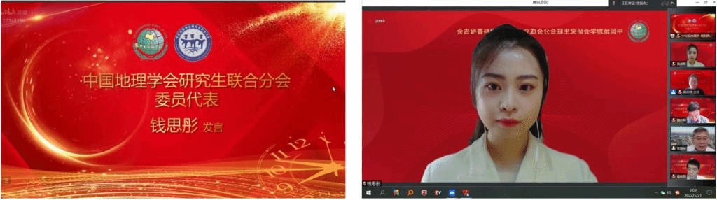 5月21日,中国地理学会研究生联合分会成立大会召开,大会公布了中国地理学会研究生联合分会第一届组成名单及研究生工作协调指导组成员名单,我院2021级博士研究生钱思彤当选中国地理学会研究生联合分会主任,我院关皓明副教授当选为中国地理学会研究生事务协调工作组副组长。会上,钱思彤代表中国地理学会研究生联合分会发言,向创建和发展地研联的各位师长和学长以及多年来支持和帮助地理学研究生成长、成才的各界人士表达了敬意与感谢,并对未来工作提出展望。