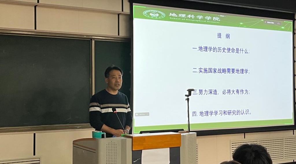 课上,卜书记从“地理学的历史使命是什么、实施国家战略需要地理学、努力深造必将大有作为、地理学学习和研究的认识”四个要点,引导学生思考地理学科与其他学科的差异性,强调“人地关系”是地理学研究的主要内容;卜书记着眼于地理学的系统性与综合性,指出“实施国家战略需要地理学”的重要意义,鼓励青年学生要激发自己的好奇心与探索欲,练就自身本领,增强自信心,在未来的基础科学研究中挑大梁、担重任。最后,卜书记在地理学学习与研究方面为同学们提出殷切希望:勤思考、多阅读、深交流、敢拼搏,要端正科学态度,不怕失败,练就一颗强大的心。