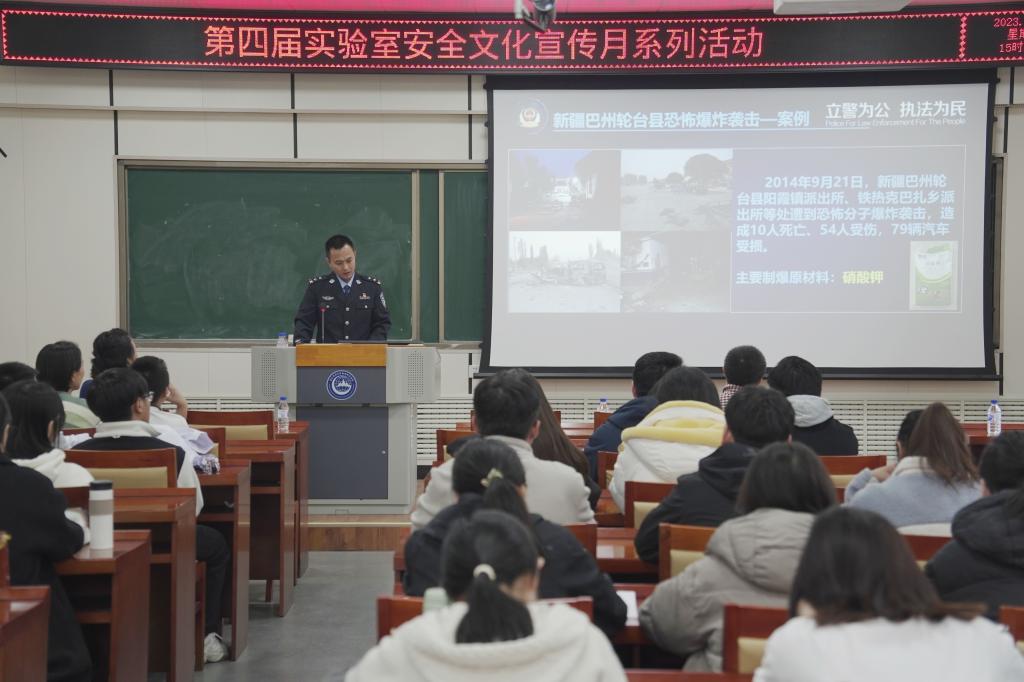 11月1日,我院举办2023年度“实验室安全活动月”系列活动之实验室易制爆危险化学品管理安全讲座及实验室安全应急演练活动。活动邀请到吉林市公安局治安管理支队二级警长计永刚做实验室易制爆危险化学品管理讲座,埃德伯格实验室EHS研究中心讲师刘存做应急演练全程讲解。永利集团304副院长宋飏,我院相关专业教师、实验室负责人,及拟申请进入实验室的硕博新生70余人参加了活动。本次活动由学院实验室安全管理员刘莎莎老师主持。