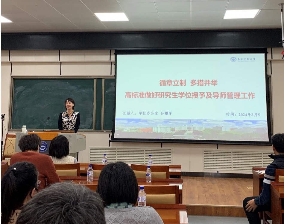 近日,为了提高研究生导师指导水平,全面提升研究生培养质量,我院举办了2024年首场研究生导师培训活动。此次活动由我院主管研究生副院长魏冶教授主持,邀请到了研究生院学位办公室副主任孙耀军老师作为主讲嘉宾。学院院长白娥教授与党委书记卜兆君教授参加培训会。