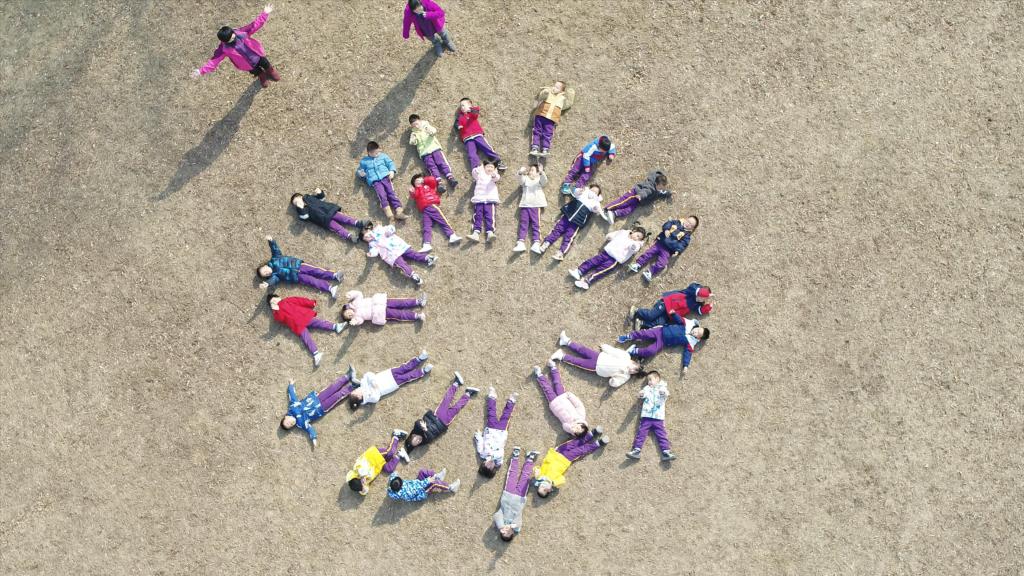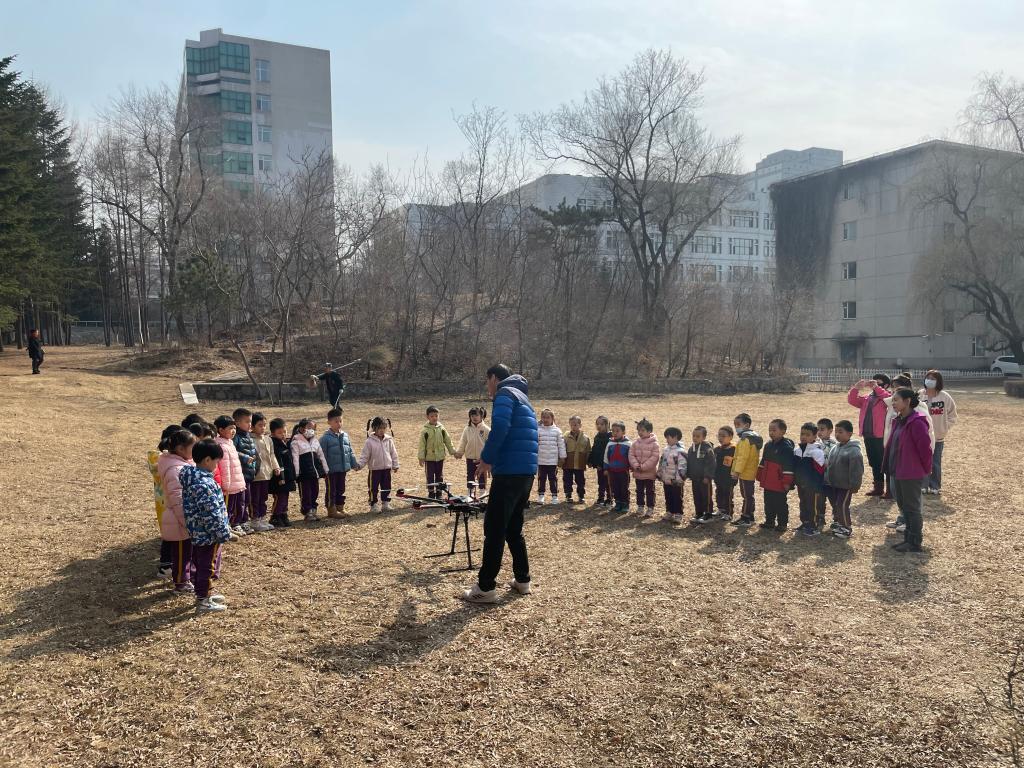 无人驾驶飞机简称“无人机”,是利用无线电遥控设备和自备的程序控制装置操纵的不载人飞机,可搭载各类传感器,收集地面遥感信息,用于地理科学研究。小朋友们观看了无人机的精彩表演,并在草坪上摆出了各种各样的造型拍照留下纪念。
