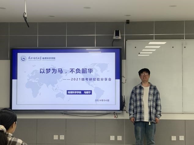 本次分享会由2021级本科生年级学委秦萌泽主持,旨在帮助同学们更好地了解考研相关事宜,为制定科学合理的学习规划做好准备。成功考取我院学科教学(地理)专业的2020级本科生何雨钦为同学们解答了部分此前收集到的考研问题,着重介绍了学科地理专业的考情及学习方法、参考资料;成功考取我院自然地理学专业的2020级本科生马毅宁主要从择校问题、备考计划、时间规划等方面进行分享,着重分享了英语、数学、政治和专业课在“预备阶段、基础阶段、强化阶段、冲刺阶段和考前整理”五个阶段的备考计划与建议;成功考研到我院人文地理学专业的2023级研究生杨晓彤补充分享了自己考研的经验,并祝福同学们“一战成硕”。最后,张婧宁老师在总结中激励同学们从经验中汲取力量,坚定信心,勇敢踏实的走好学习之路。本次交流会上,师生交流充分,朋辈积极互动,同学们纷纷表示收获颇丰。