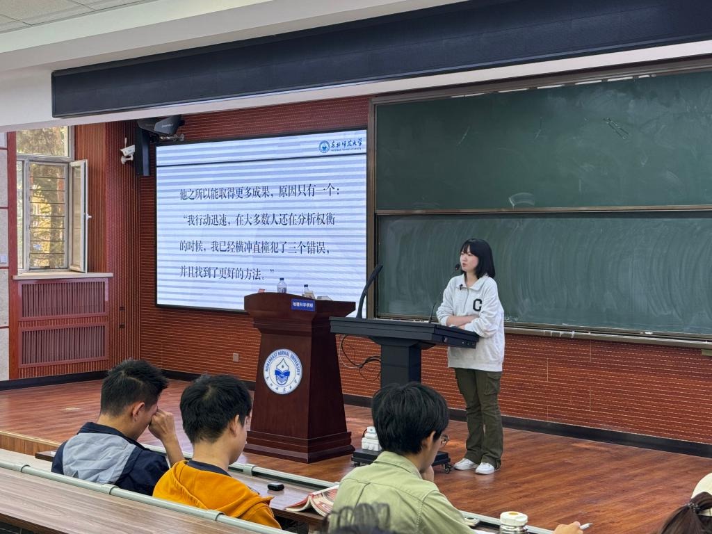 4月24日下午,第二十四届“理想与成才”巡回报告会成功在地大一教举办。本次报告会邀请到“理想与成才”报告团成员——数学与统计学院的陈姝妍为全体2023级同学做经验分享。