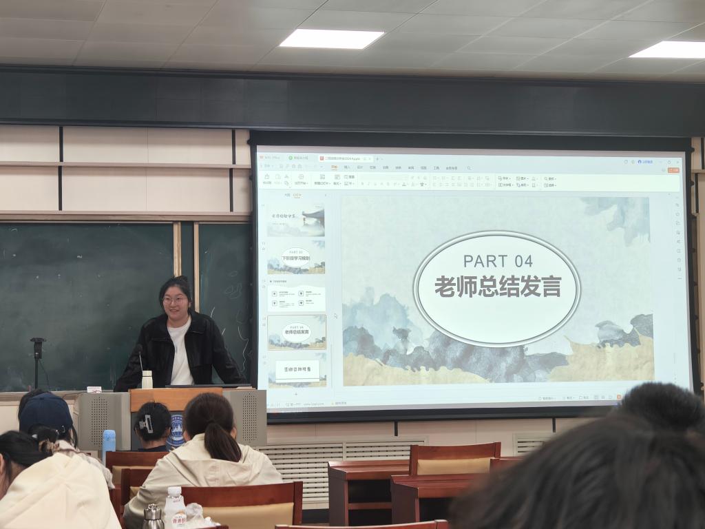 会议召开前,辅导员姚佳老师组织同学们聚焦大学发展目标拟定大学发展计划,帮助同学们进一步明晰大学规划,并有针对性的为同学们提供帮助和支持。分析会第一部分,由学习委员通过专业平均分测算、绩点对比和绩点分布情况统计等方式对上一学期成绩进行了多维度的网格化分析,并对下一学期班级学风建设进行整体规划,设立班级目标和个人目标。分析会第二部分,由专业内成绩优异的同学为同学分享经验,通过学习方法探讨和学习笔记展示等方面进行交流。分析会第三部分,2023级研究生王艺潼对各班分析会进行补充总结,鼓励同学们要认真对待每一门课程且做好学习规划,针对同学们“如何平衡休闲与学习的时间”这一问题也给出了合理化建议。