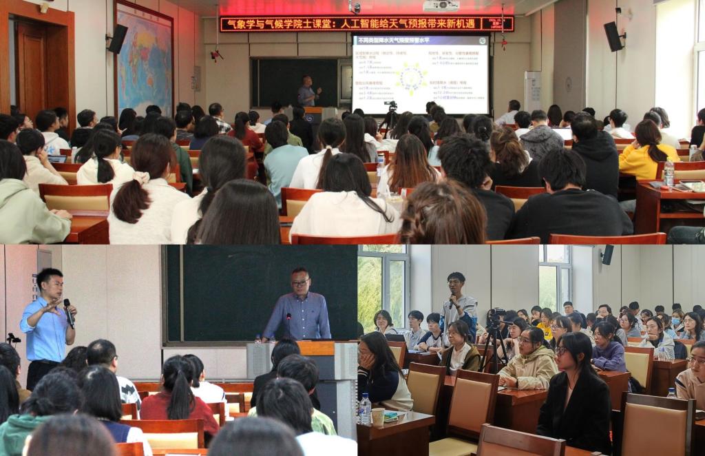 这次报告既是一次学科前沿的学术报告,也是我院国家一流本科课程《气象学与气候学》院士走进课堂的第一讲。在报告过程中,师生们积极提问,围绕报告内容展开热烈的讨论,与沈院士共同探讨我国天气预报的发展动态和人工智能在预报中的重要价值。沈院士还从切身经历鼓励学子们打好学科基础,更要开阔视野,利用好新的人工智能技术去探索未知的领域。