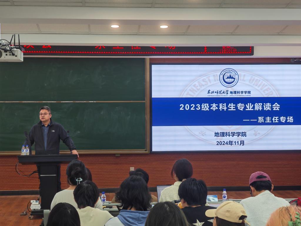 2024年11月12日,永利集团3042023级本科生专业解读会在地理大教室召开。自然地理与资源环境系主任宗盛伟、人文地理与城乡规划系主任李晓玲、地理信息科学系主任赵建军三位老师应邀为同学们进行专业解读,学院副院长孙仲秋、辅导员姚佳和2023级地理科学类专业学生参加了本次活动。会议由学院党委副书记兼副院长杨成岭主持。