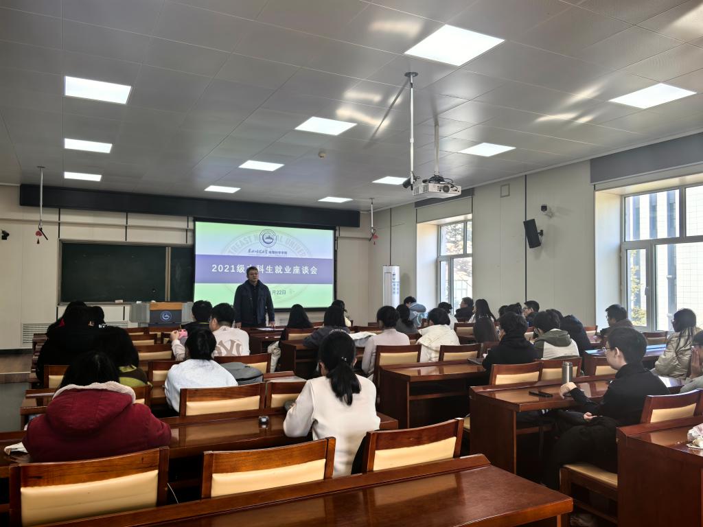 座谈会上,杨老师向同学们介绍了当前就业市场形势,着重分析了中学地理教师岗位的变化趋势。同时为同学们提供了几点就业建议,一是尽快明确就业目标,二是适当调整就业预期,三是积极开展就业求职,基于对当前中学地理教师岗位的数量、标准形成正确判断,结合实际情况,抓住签约机会,同时不要违约。