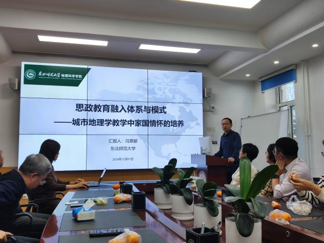 首先,研讨活动由人文地理与城乡规划专业冯章献副教授做题为《思政教育融入体系与模式——城市地理学教学中家国情怀的培养》的报告,以《城市地理学》课程为例深入阐述了人文地理与城乡规划专业相关课程天然的思政属性,细致梳理了课程思政元素,并展示了课程思政教学案例。在报告后,与会教师切实理解课程思政的重要性和可行性,并对本专业课程思政建设路径与方案进行了深入探讨。