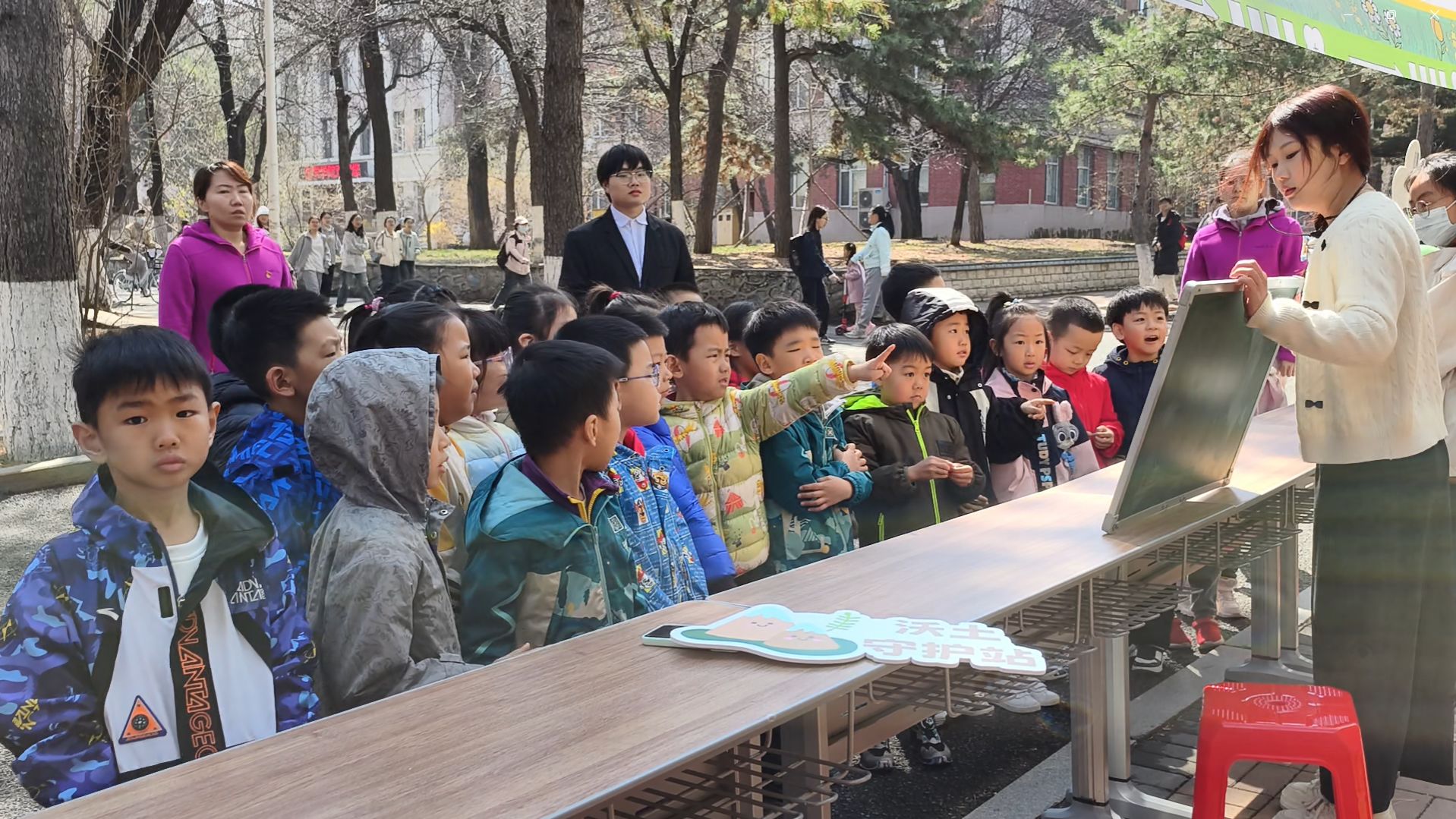 本次活动共包括“REUSE 旧物拯救计划”“RECYCLE 减塑计划”“REDUCE 露营计划”“地理科普计划”等四个部分。“REUSE 旧物拯救计划”,开办跳蚤市场实现物品的交换与买卖,老师同学们穿梭于摊位之间,使旧物焕发新生,减少资源浪费。“RECYCLE 减塑计划”,鼓励同学们带来闲置瓶罐兑换多肉植物、环保袋与种子明信片等奖品,践行回收理念。“REDUCE 露营计划”,为活动提供了休闲娱乐的场所,参与师生凭借自带水杯可在露营区兑换特色咖啡,一杯醇香的咖啡承载着师生对减少一次性用品使用的坚定承诺。“地理科普计划”,设置科普小课堂和科普互动区两个环节,科普小课堂面向幼儿园小朋友,围绕地质、土壤和生物多样性三大主题,通过《土壤研究所:脚下的生命密码》《会说话的石头:听标本讲地球故事》《奇妙生物圈:猜猜我的家》等生动有趣的小课堂,激发孩子们对地理科学的兴趣;科普互动区面向大学生,设置“地质密码站”“沃土守护站”“万物共生站”三个打卡点,将环保知识与趣味体验深度融合。活动现场气氛热烈,绿色消费、低碳生活理念在互动中深入人心。