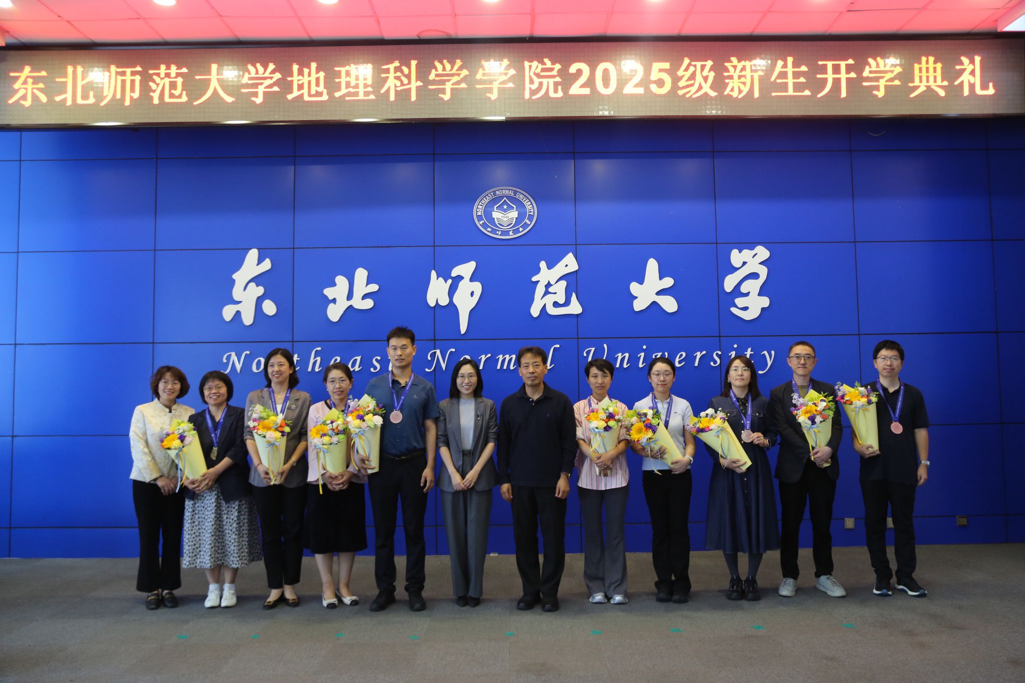 典礼特设“教师从教周年表彰”环节,向长期坚守教育一线的教师们致敬,现场为从教满30年、20年与10年的9位教师授予纪念勋章。杜海波老师作为教师代表,结合多年执教与科研的心路历程,激励新生在地理学科领域敢闯敢试、追求卓越,希望同学们将论文写在祖国大地上,努力成为国家需要的新一代地理人才。