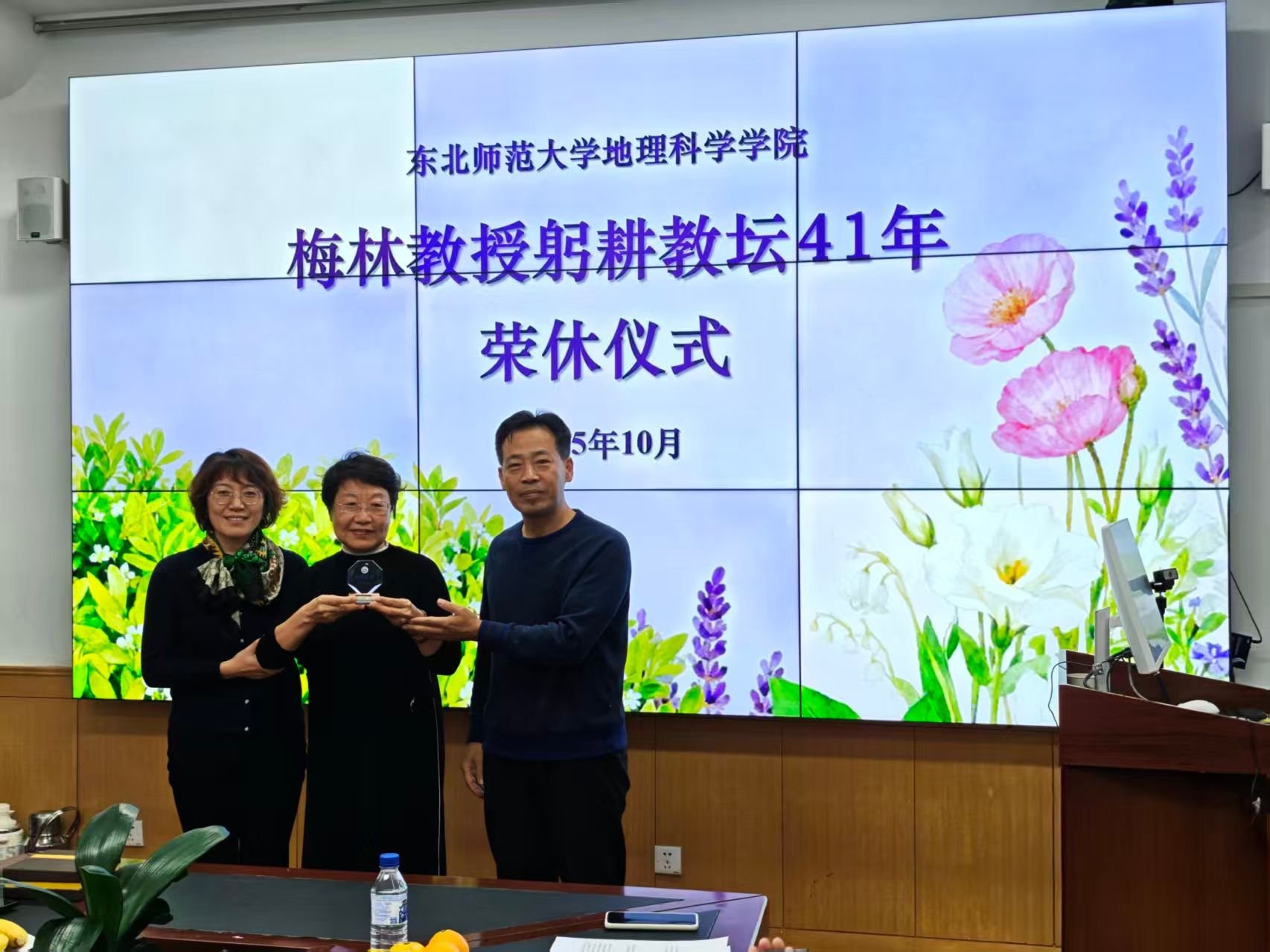 在温情洋溢的分享环节,多位教师代表依次发言,深情回顾与梅林教授共事的岁月。他们娓娓道来,既讲述她在学术探索中的一丝不苟、在课堂教学中的循循善诱,也分享了她以开阔胸襟与不竭热情凝聚团队、鼓舞人心的诸多往事。一段段饱含温度的回忆,勾勒出一位良师益友的动人形象。随后,人文地理与城乡规划系青年教师向梅林教授赠送了精心准备的荣休礼物,表达对其学术精神与师者风范的由衷敬意。