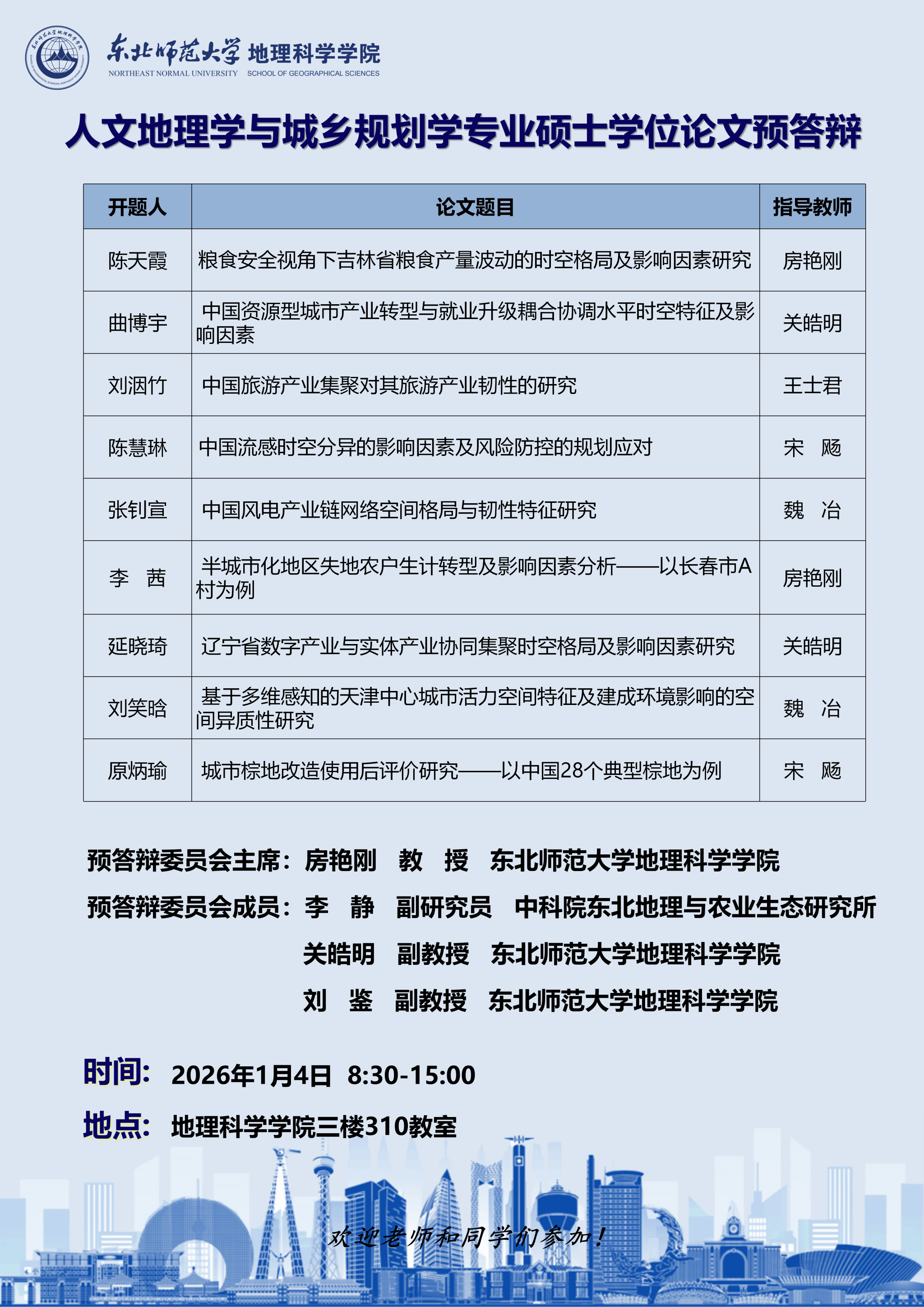【硕博答辩】人文地理学与城乡规划学专业硕士学位论文预答辩