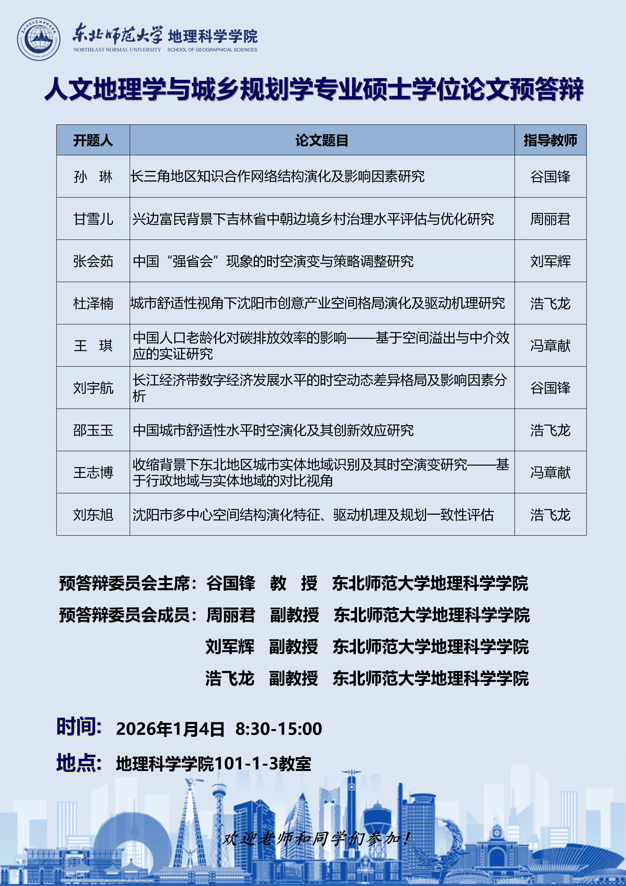 【硕博答辩】人文地理学与城乡规划学专业硕士学位论文预答辩