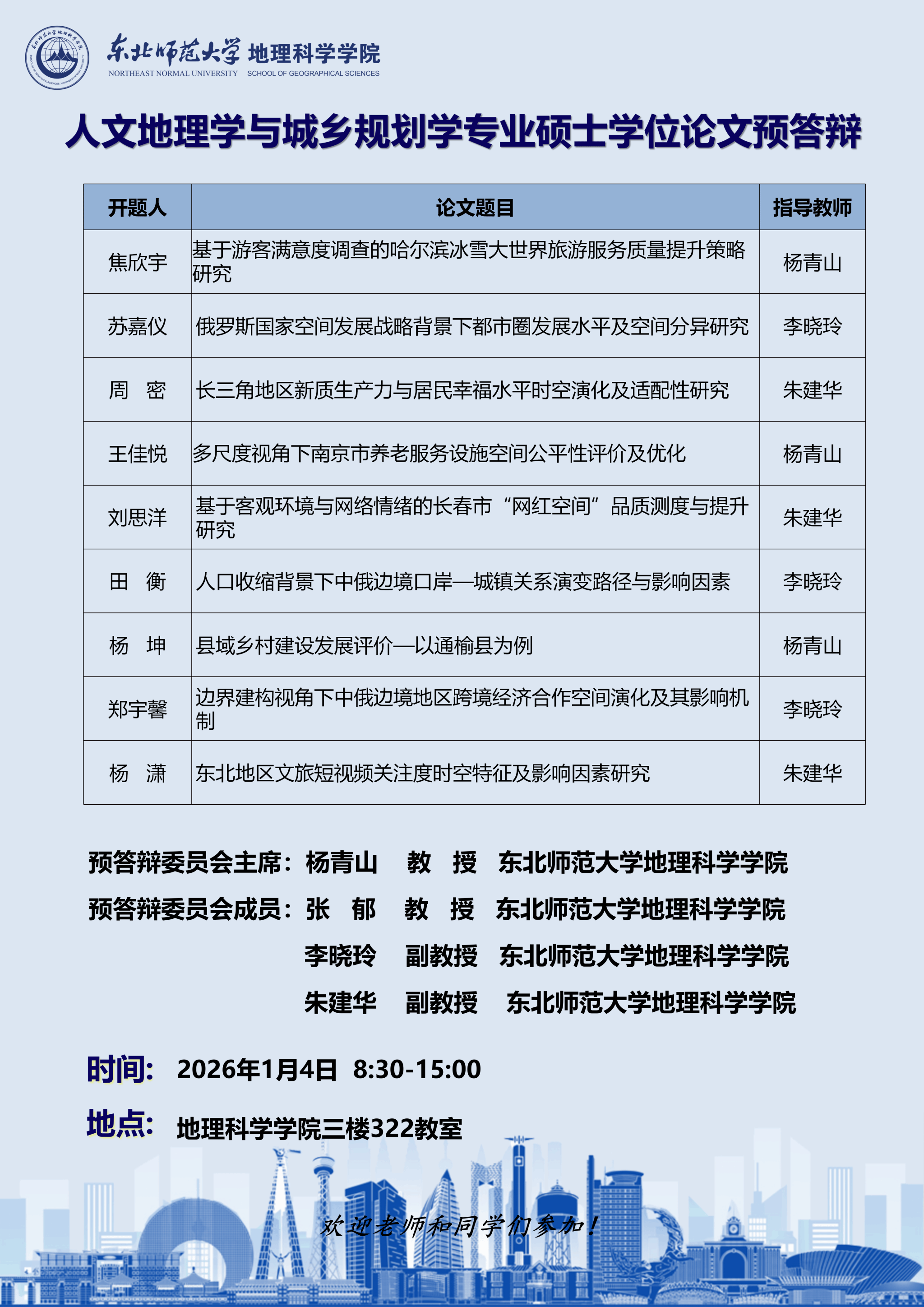 【硕博答辩】人文地理学与城乡规划学专业硕士学位论文预答辩