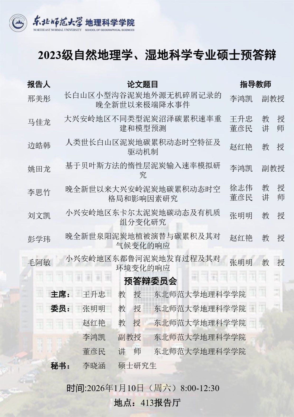 【硕博答辩】2023级自然地理学、湿地科学专业硕士预答辩