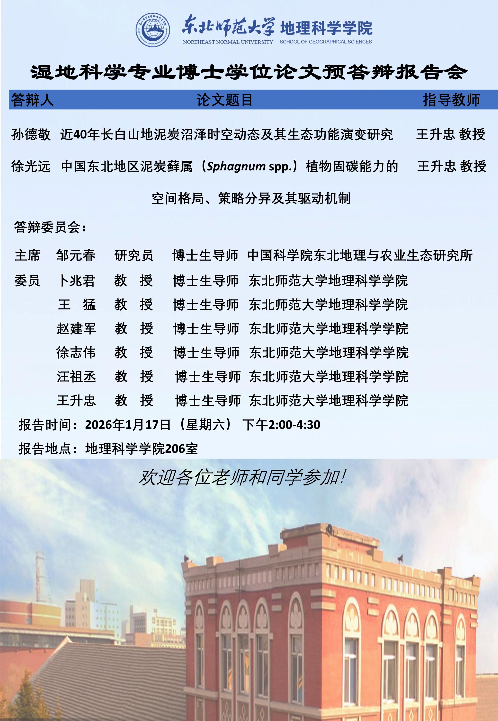 【硕博答辩】湿地科学专业博士学位论文预答辩报告会
