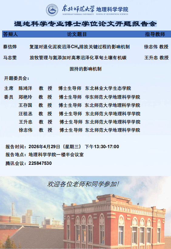 【硕博开题】湿地科学专业博士学位论文开题报告会