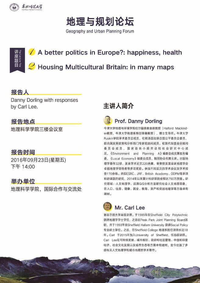 Danny Dorling & Carl Lee:1.A better politics in Europe?: happiness, health;2.Housing Multicultural Britain: in many maps
