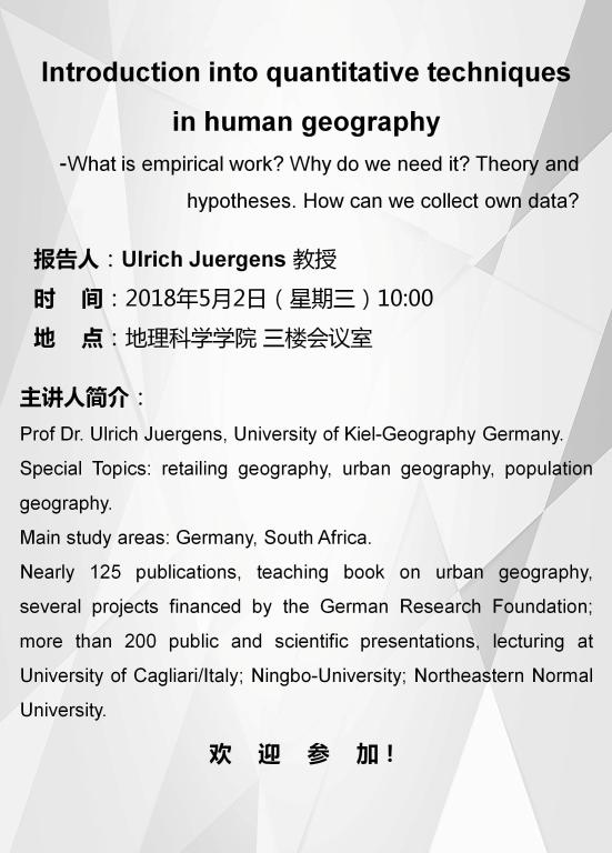 Ulrich Juergens: Introduction into quantitative techniques in human geography-What is empirical work? Why do we need it? Theory and hypotheses. How can we collect own data?