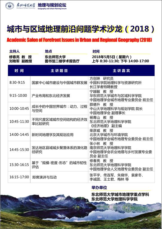 【地理与规划论坛】方创琳、宁越敏、薛德升、杨青山、柴彦威、张小林、修春亮等:城市与区域地理前沿问题学术沙龙(2018)