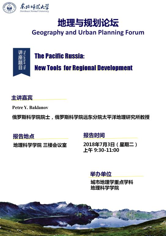 【地理与规划论坛】Petre Y. Baklanov:The Pacific Russia: New Tools for Regional Development