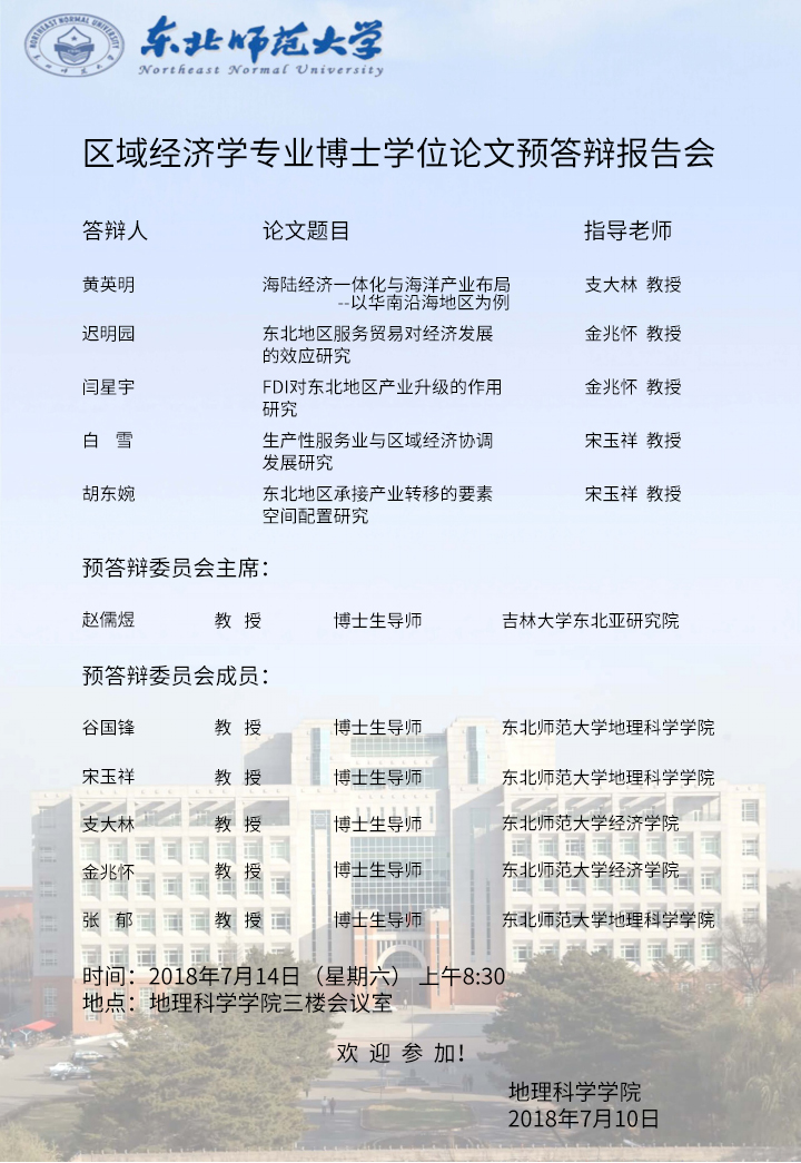 区域经济学专业博士学位论文预答辩报告会