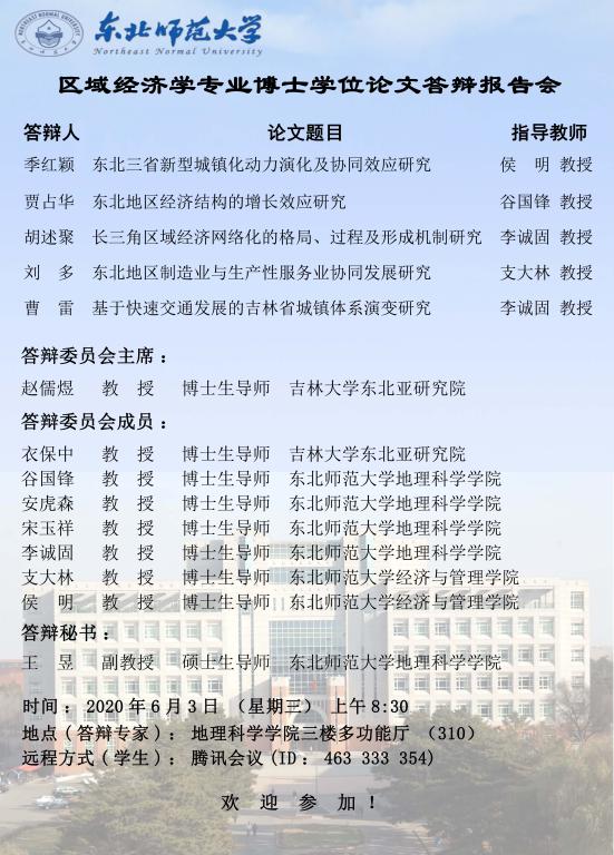 【博士答辩】区域经济学专业博士学位论文答辩报告会