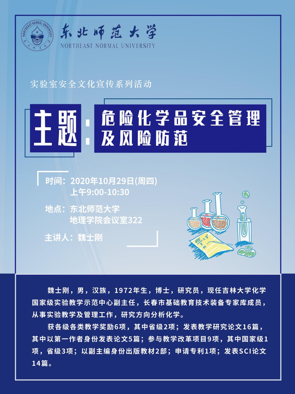 【实验室安全文化宣传系列活动】魏士刚:危险化学品安全管理及风险防范