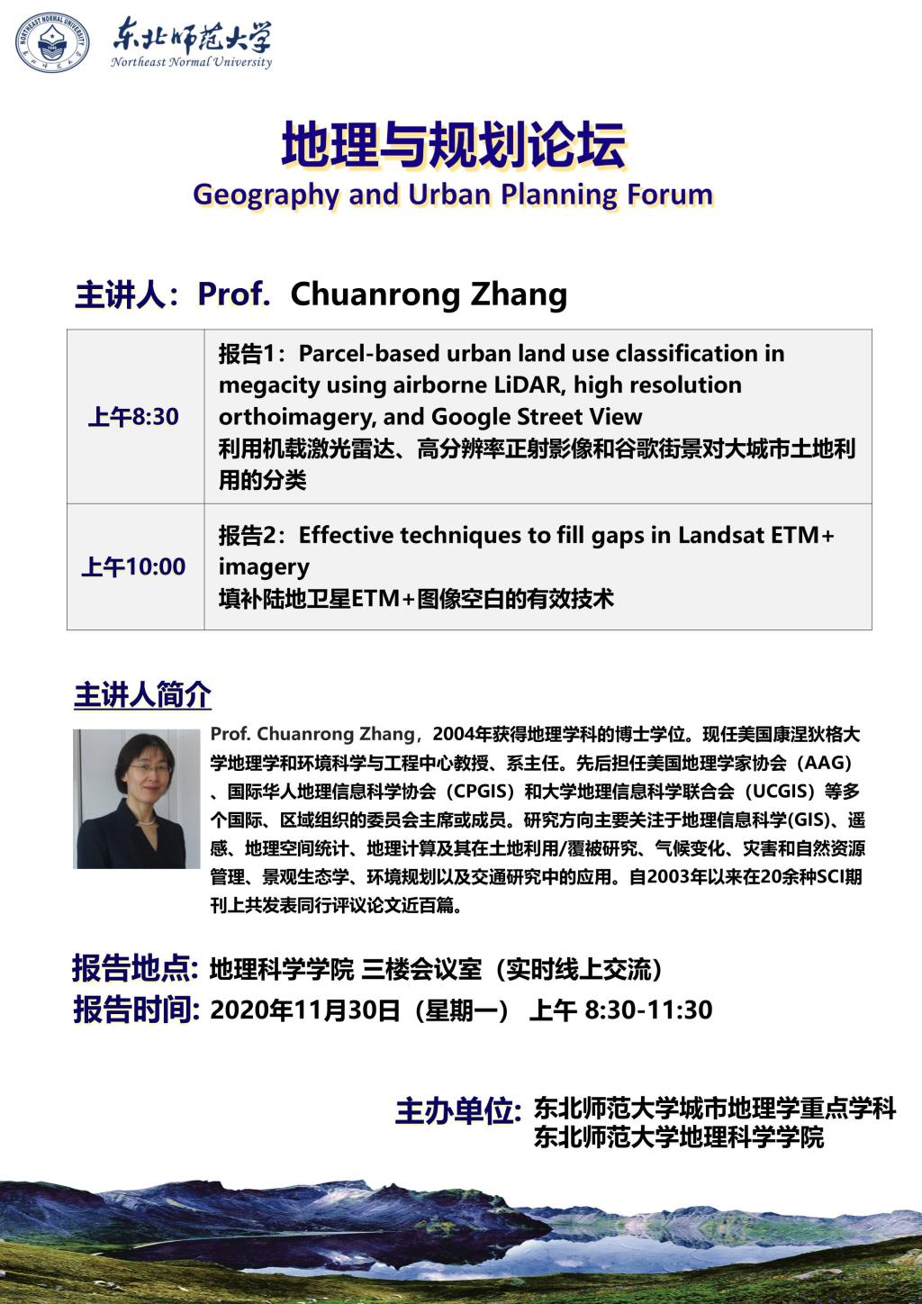 【地理与规划论坛】Prof.Chuanrong Zhang:1.利用机载激光雷达、高分辨率正射影像和谷歌街景对大城市土地利用的分类/ 2.填补陆地卫星ETM+图像空白的有效技术